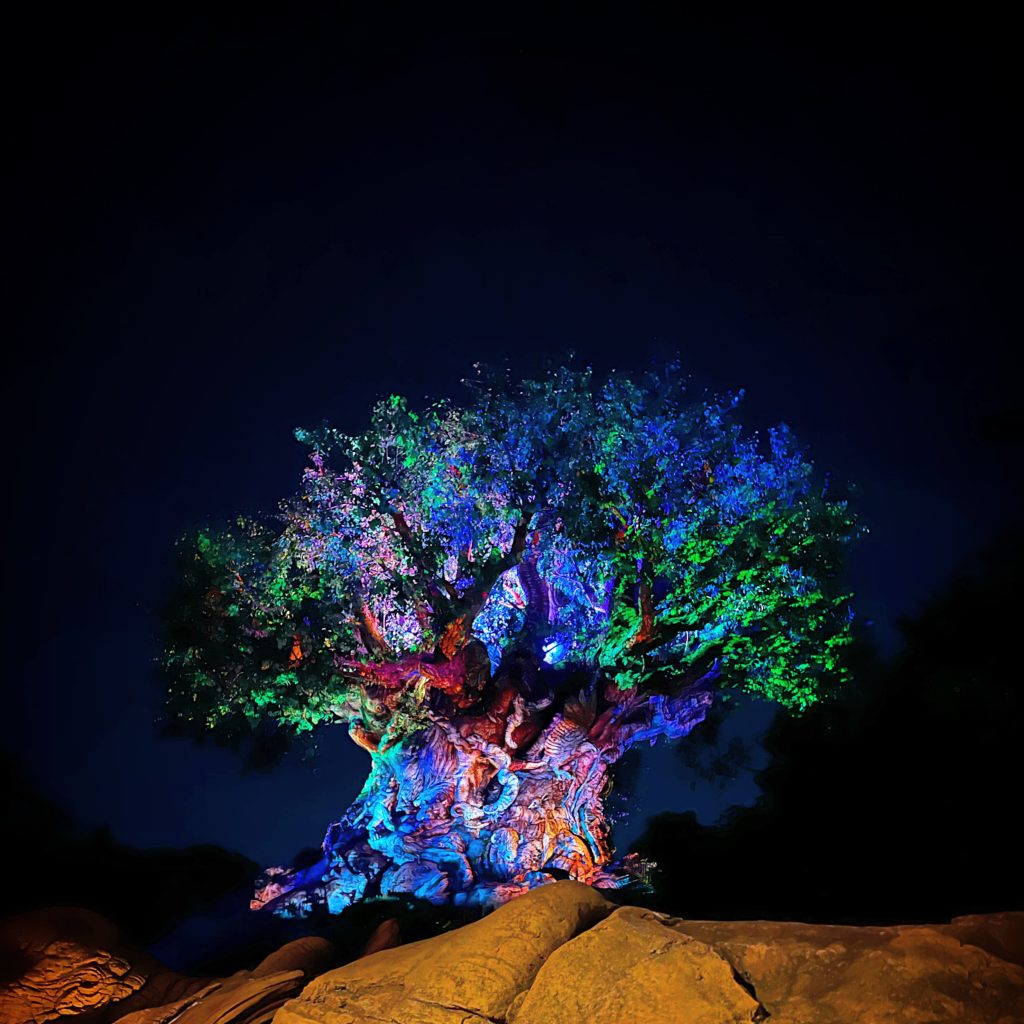 Luckily, Animal Kingdom is the ONE park at Disney World where you won’t find any fireworks at all. This is because it would be upsetting to all the creatures who call Animal Kingdom their home. Instead, there is a nightly light projection show on the Tree of Life, which is much more sensory-friendly.